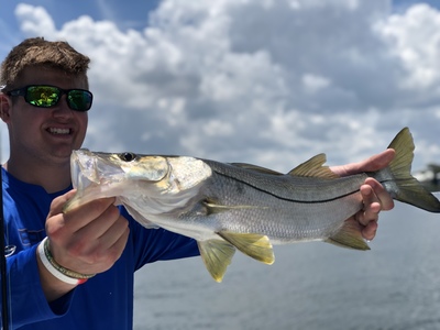 The inshore fishing is producing great catches of snook, near inlets deep channels and along sea walls. Live baits and artificial lures like DOA C.A.L. 4 ' jerk baits in Glow / Gold Rush Belly work great. The snook are very active early in the morning and late afternoon. Average size of the snook has ranged from 2 to 20 pounds. Top water plugs worked in a walk the dog brings plenty of surface explosions, the snook are very aggressive on the flats after rain storms as surface temperatures drop .
