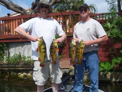 Today was a lot of fun for me as I was out with a great father and son team from the Ocala, Florida area. The guys are good fishermen themselves and had a great day on the water here in South Florida. We launched at the Miami airport lakes and after a few fish in the lagoons decided on running west into the Miami canal system. The water was like chocolate milk today with the canal cleaners running those big diesels up and down the areas that we were trying to fish. We ended up finding some solace from those machines way back in the neighborhoods and some clean water and when we did we found the fish also. Our best 5 in the morning went about 15 pounds which is not too bad at all for the guys first time down and we ended up with about 2o or 25 fish.