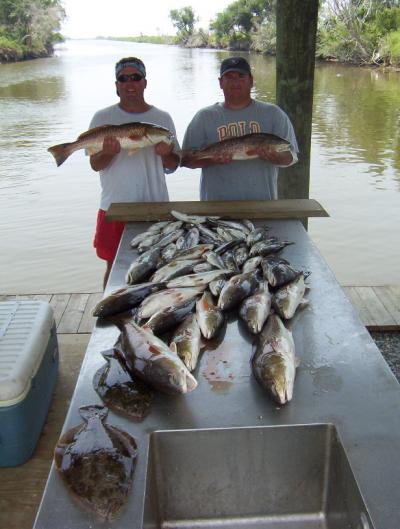 6-12-07 Monroe Newman and his friend Bart were my guest for today. Over the weekend the seas were calm and the trout bite hot. Today was a different day NW wind pretty stiff and 2-3 ft seas. I stared out close in but only got a few so we made the run outside it was a little rough and the trout were not to be found. Headed back in and found some calmer water and fished the birds with steady action on school sized but keeper trout. Flipper came in and stopped the bite cold. Almost 11:00 now so I decided to go get some reds. It only took one stop and the guys had their limit on ice by noon. Slow morning but persistence paid off with a nice box full of fish.