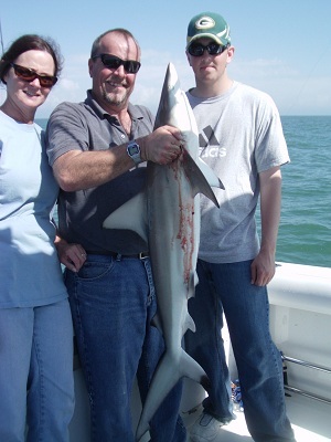 Early week had the Fossum family from Pocatello, ID. and they started the WHIPASNAPA CHARTER BOAT (BILOXI,MS) off very strong. Was a catch and release trip which been running quite a few of lately (that's why the pictures have been down). But most decide to keep a few when I tell them have a few places that will cook their catch for them. Been sending most to Shaggy's (Pass Christian) and they seem to be doing a fabulous job! Anyway the Fossum started out with some hot action on some very nice ground mullet, white trout(2 at a time) bout as fast as it hit the water. They were on and we were having a blast! After about 2hrs of that we went to the Island where the sharks and big bull reds kept us very happily entertained with some drag ripping runs and a few mad dashes around the boat for another couple hours.