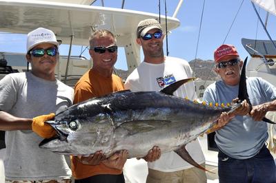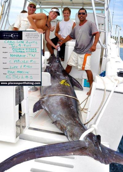 BILLFISH: Wow what great fishing we are experiencing right now. As always, when the weather hots up so does the fishing. We have been experiencing high temperatures and even a sprinkling of rain and it was on this day that we had our catch of the week, an impressive 650 lb blue marlin aboard "Cabolero" caught by Andrew and Steven Wigger (father and son) from Nashville, Tennessee, just three miles off of Land's End on a black and yellow lure, taking them 55 minutes to bring to the boat on 80 lb test, not only did they catch his huge fish but a striped marlin also, released by Katie Wigger- what an incredible family memory for this group! We have not seen such a big blue so early in the year for many years. This was an enviable catch but others were not left out with some great catches of striped marlin and even a sailfish. We were thrilled for the guy that caught the sailfish as he had traveled all the way from Redcar, England. Alec Connell visiting with wife Dot to celebrate their anniversary, told me "I have to catch a marlin, I have been trying for years" – being the kind chap that he is, he shared his boat with two people he met and it turned out that THEY caught a marlin each, while Alec sat by watching, aboard the "Tracy Ann", though he did get a sailfish. His good deed was rewarded though, a few days later when he went out on the "Rebecca" on July 5th, a day before going home, when he released three striped marlin and caught twelve tuna. "Shambala" did really well this week, releasing six striped marlin in the "Stars and Stripes" charity event on June 24th as well as catching four tuna for John Modjeski and friends close to the 95 spot. On July 2nd this same boat released four striped marlin twelve miles off of Land's End for Mark Miller from Houston, Texas. "Adriana" did well to release three marlin, just five miles off of La Playita, all on live bait, for Steve Gray from Bauxite, Arkansas & Karen Webb from Hernando, Mississippi. Catches were not so close for Audrey and Steven Sowada from Cottage Grove, Minnesota who went forty eight miles out from the lighthouse to catch and release two striped marlin, one dorado and seven tuna aboard "Tracy Ann". Forty nine percent of charters caught marlin with most catches one or two fish, though as shown above, others did a little better. Pisces total billfish catch was 74, breaking down into 72 striped marlin, 1 blue marlin and 1 sailfish; all but three fish were released.