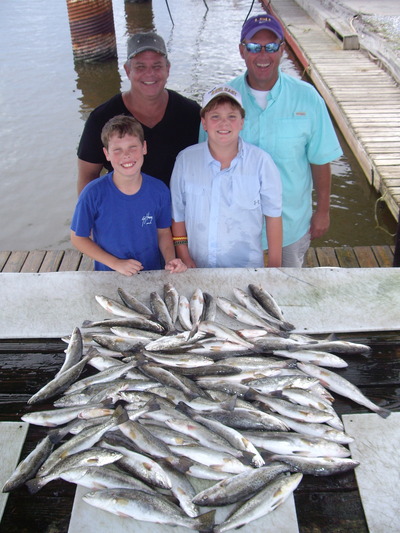 I had the pleasure of guiding Mike Pittman of Pittman Construction. He brought along his son and son's buddy, along with his high school friend Tim Martin. We had a day weeding through a ton of small fish, but got on some keepers by the day's end. The crew did well and boxed 73 trout 12"-16". Another great time with these guys as always!