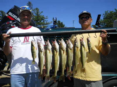 I really didn't think me and my clients were going to catch too much today with the sunny skies and calm seas, but I was pleasantly surprised. It wasn't fast and furious by any means, but we kept plugging away and ended up with 7 keeper walleye. There was really no hot color on the spinners. There was also no hot depth. We caught fish as shallow as 12 feet, and we caught fish as deep as 40. It's been a very tough bite this summer on Little bay de Noc, but it seems to finally be picking up. Time will tell...