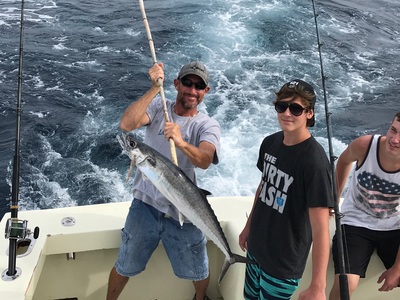 The bigger fish have been caught trolling and under frigate birds. With all the debris out there, the frigates have generally been on the larger fish. Trolling dolphin lures has put us on the bite and if they are picky we have live bait ready to go.