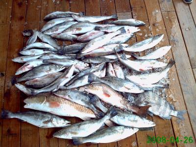 Pretty day but rough winds Saturday on the Beach. Onboard for the day were Gary, Jason, John, and Dale. Just like the day before the wind was dead calm as we entered the MRGO at Shell Beach, but by the time we got down past Hopedale the wind was starting to pick up. The wind had everything stirred up in Bay Eloi and made for some tough fishing. We did get on a couple good Trout bites and missed a lot of fish fighting the slack lines in the wind. Once again the bait of the day was the Hybrid Flurry minnow in opening night fished under a cork. The guys fished hard and put together a nice box of some very nice Trout up to 4 pounds. They had a great time and were a lot of fun. Total for the day was 50 Trout, 5 Reds, and 2 Sheepshead.