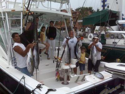 dinner. Now if you want to get into some yellowfin tuna they are little further out you need to hit north of corbetena or the banks but if you get out there far enough the yellowfin tuna are boiling hot and there jumping all over the place there is nothing to tricky about the fishing right now they everywhere we have just been trolling with live bait, and lures. the black and blue marlin are starting to show up we caught a nice 350 lb blue last week also a little north of corbetena and saw a huge black but could not get it to bite but these things happen I guess that's why they call it fishing we Our having our annual marlin and tuna tournament next month that we won last year on the 2006 luhrs with Captain Steve Torres with a 700+ black marlin! I attached some photos of the tounamnet marlin