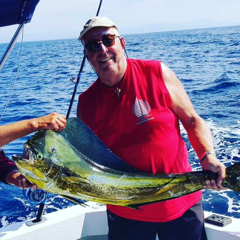 The inshore fishing as being producing some Rod bending action with the mahi mahi also known as Dorado they are ranging 15 up to around 40 lb. Mixed in with the mahi-mahi have been schools of Yellowtail that are so much fun to catch. Fast action that will wear you out really quick. Along with these fish we’re seeing some sailfish mixed in some of the other pelagic fish right here in the bay of Puerto Vallarta. The Puerto Vallarta deep sea fishing offshore is producing quite a few Marlin. Mostly black marlin and blue marlin ranging from 200 lbs up to 650 lbs. We fished on the larger sportfishing boat and went three for four on Marlin this week. There’s been plenty of sailfish out there when the Marlin weren’t biting. These two fish have kept us busy all week long for the offshore fishing and the water temperatures are holding steady around 80 deg. to keep this going. The mahi-mahi have been hitting some of our short lures like black Bart . This been the call of the day and they’re working well on some of the short lines. We had a huge mahi-mahi that took a Marlin lure this yesterday what a fight.