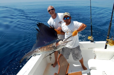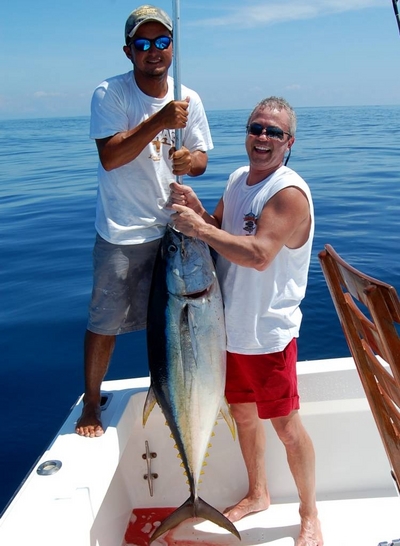 As we fish on the First day of February here in Quepos Costa Rica we have been seeing lots of Marlin everyday. January 31 Frenzy had a Marlin, client Doug Brent released his first Sail and had a 100 lb. Yellowfin Tuna. January 30 Clients Monique and Eric fished Inshore and had 5 Rooster bites and Monica got the prize Rooster, They also had Snapper and Mackeral. Jan 29 we fished with a new boat here in Quepos and the Marlin and Sailfish were jumping everywhere out there. I have not ever seen so many marlin at this time of year. The waters are renownedly calm and it looks like glass offshore. Fishing has been about 20-25 miles out. Clients fishing Reel Deal on the 28th released a Marlin and 4 Sails. Steve Smith and crew on Pez Espada released a Marlin and a Sailfish. On the 27th clients Rick Davies and Claude Christiano on Pez Espada released a Marlin and a Sailfish while the Smith group on Wahoo had 2 Sailfish and some nice sized Mahi Mahi. Hope the fishing stays like this. Just about every boat in the fleet out all this week.