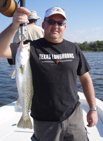 The first spot was a group of oyster bars that were beginning to get flooded by the incoming tide. Perfect timing for such a quick trip. Luckily we had a live well full of greenbacks that a fellow captain was generous enough to share with me (because my bait spot had run dry) and when we pulled up we started chumming. The first bite came on a really nice trout but we lost him at the boat. It took a little while to get another bite but when we did, everybody started hooking up. The bite only lasted 15 minutes but in that time we managed 7 or 8 redfish and three really nice trout.