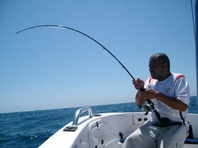 It was not very long before the reel started running and 200m of line was taken, by the take I am sure it was a shark, we then followed it for around an hour and a half over 2 Nautical Miles when we eventually got it in front of the boat, it was a Hammer Head Shark of over 4m long, estimated at well over 200Kg (450lbs) and when I reached over and grabbed the leader it saw me and took off never to be seen again, the light tackle with 19lb line was just not strong enough for this beast.