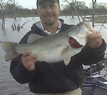 Some bass are starting to move up. Most of the shallow fish we have caught are still pretty light colored, like they just moved up. Fishing the shallows we are using a chartruese/white spinnerbait, a Revenge Viberator chartruese/white, and a shallow running crankbait. We have caught a few fish on a Sebile Flat Shad also. Sunday afternoon when the wind did die down, for the first time this spring it seems. We were able to get bit on a wacky rigged Zoom mag finesse worm. We are also getting some fish on a black/blue jig 1/2oz and a 8" watermelon/red lizard around some standing timber in 5 to 14 feet of water along creek channels. Did manage one big fish the last couple days. Got her on a spinnerbait in about 2 feet of water. Weighed in at 8lb 12oz's.