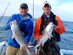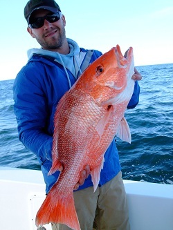 Don't know how many red fish we caught but it was alot. Got offshore Monday. Fairly strong north wind, about 3 to 4 ft. seas suppose and that new boat trucked us right on out there all dry and comfy.