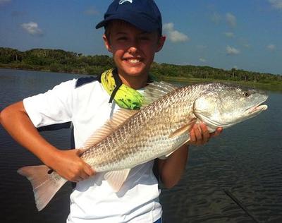 Summer 2013 continues to provide great fishing on Mosquito Lagoon Florida. Water levels still remain low, keeping our fish location pattern the same through now being mid August. Redfish have been my main target species, catching from half dozen to a dozen or more good fish on every trip so far this summer. Most all fish being from 24" to 31" or about 4 to 10 pounds. We have also had many quality Seatrout caught on the flats, as the larger Trout do like to hang out in the same locations as our shallow water Reds. Ed from Georgia brought his sons Zak and Cole with me in late July and caught 5 reds to 31" plus a bonus 25" Trout. Zak was top fisherman with the big Trout and Reds.