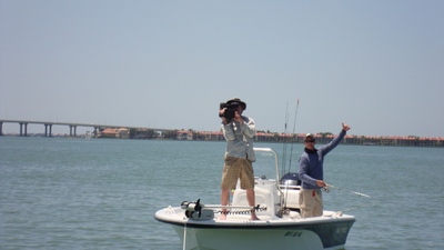 Thursday I had the pleasure of filming a new TV show Fishing Florida. Originally we were scheduled to film last month but Mother Nature made quick work of that. Bait was a challenge, the Skyway Bridge was very rough making tossing a cast net very difficult. I hit the flats chumming for white baits and had a well full in 30 minutes.