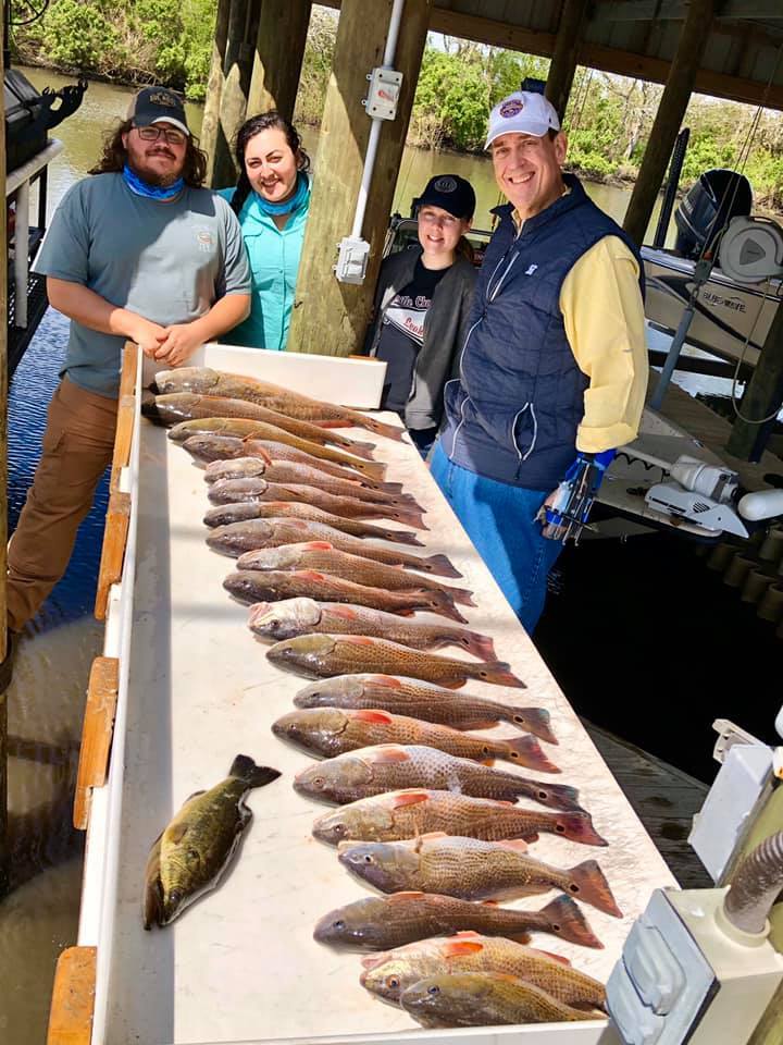 This past weekend we helped Roger Gauvreau and the team at Pelicans Roost Resort with a charter. Brian McClure, Reed McClure, Salina, and Leah boarded the Majek and headed out after redfish early Saturday morning hoping to beat a heavy East wind forecast scheduled to hit mid-morning. We got on a steady bite and boated their limit plus a donor green trout before waves and winds forced us to call it a day! A great crew that were a pleasure to fish with.