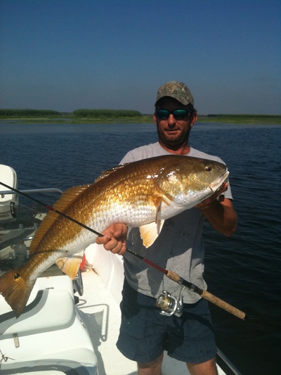 We left the dock at 7:30am and made a 20 minute run. I knew the fish wouldn't bite right away because of cooler temperatures. The first two stops resulted in one nice red, the third spot was the charm. We sat in the mouth of a small cut draining out the marsh and caught 40 to 50 in the next hour and a half. We then decided to go looking for BULLS, after catching another 20 plus fish in the 10-20 lb range we called it a day. For the next several months we expect to catch 100 per day, so if you would like to get in on the best action in the country give me a call. Capt Brandon Ballay (985) 637-8901