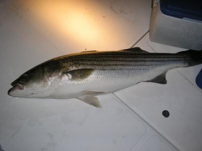 I hit the water this morning at 3:30 am I had a few bunker that Captain Mike of SunBum Charters left for me in my cooler. I ran out to my first spot right inside New Haven Harbor,Anchored up in 20 feet of water. Put on a head and started to get my gill net ready. with in 5 mins the rod went off. 1st keeper striper of the year. Did all the same again and a couple of mins later another keeper. Now I was going to need more bunker so I let the net out. within minutes I had about a dozen bunker in the net. So time to fish again. About 15 mins later and about 5 short runs I get another fish. Now the Sun was starting to move up. I wanted to scout another spot in very shallow water. It was hard leaving that spot with fish biting but I wanted to get an Idea on how these fish are moving. I made about a 10 minute run to a shallow rip,7 feet of water off of East Haven. I pulled out the leadcore setups and put chunks on each of them. The tide was ripping hard so I let out 3 colors and put them in the rod holders. with in 5 minutes I had doubles on. I ended up losing one of them but the one I landed was 38 inches and 19 pounds. The action stayed pretty hot until the sky lite up and then It became all bluefish. The total for the morning was 7 Bass from 32-38 inches and about 15 bluefish in the 4-8 pound range. 4 of the Bass were taken on leadcore line in 7 feet of water. Captain Mike and Bill showed up about 5:30 and was able to hit a few for themselves .