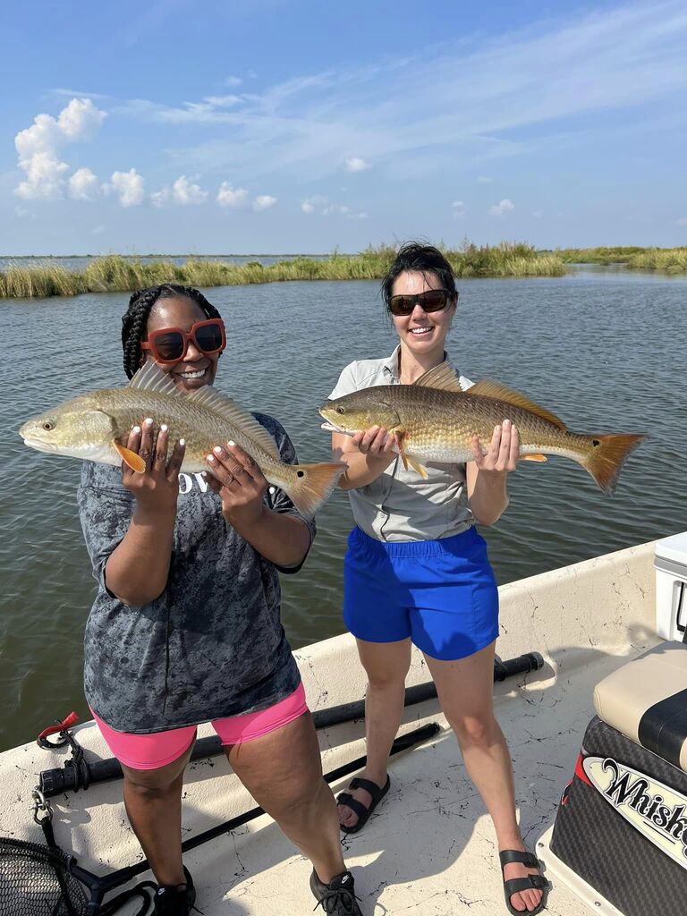 A recent trip with repeat corporate client Marquette Transportation Company. Anna Whittemore and crew showed up early to take their shot at these Delacroix redfish!