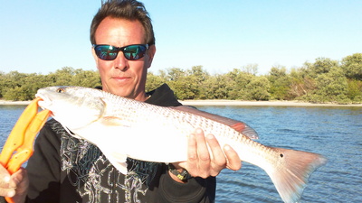 As the tide continued to come in, I suggested to Dick that we head back north to the area I was familiar with, and had had a good day in a week or so ago. We struck out for the most part for a while. I hit a big redfish in the same hole I'd caught plenty in a week earlier, but it took off so hard it managed to pull the hook about 30 feet away from the boat. Arrgh! I couldn't get another one to eat.