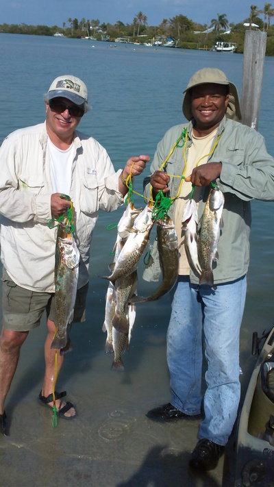 My Friday trip was with Rick Bardowell, an old friend I hadn't seen in at least seven years, and his long-time friend Dexter Lee, of Weston, Florida. Rick had been in the Ace Hardware business back when we fished, and had sold out and started a company that manufactures custom sized A/C filters. Rick said he hadn't been fishing since. I was excited to see him after all these years, and excited that he was willing to give the kayaks a go. I knew in my gut he would love it.