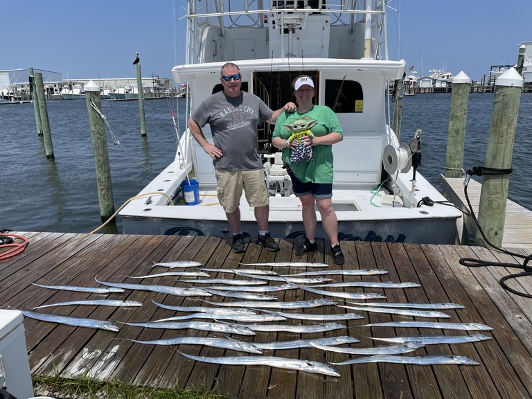 We had a great morning with Heather and her husband - plenty of ribbonfish action for sure. They are a fun fish to catch and are great to eat! Offshore has been catching yellowfin tuna, wahoo, mahi and marlin. We had a nice bluefin on yesterday, unfortunately, he came off just behind the boat. Book your charter today at www.fishinfannatic.com or call (252) 473-7092. Tight Lines, Capt. Mark