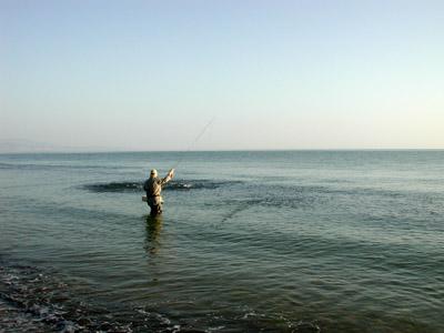[b]Tip: [/b][i]When fishing the beach and the fish are crashing close to shore, cast diagonally to the shore - not straight out- keeping your fly in the shallow zone where the fish are the most active. [/i]Water temperature 66-73