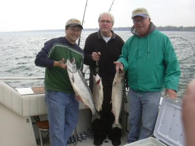 Out on Saturday, worked the Genny River plum from 15 to 40 fow. Nice mixed bag of fish including kings, browns and a steelhead. Had stick baits in natural & red/brown going, wonder bread, watermelon & blk/silver spoons off riggers and slide diver lite bites.