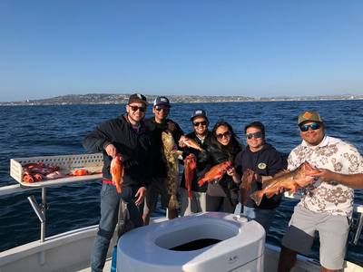 Captain Hale at the helm and first mate Mat on the back deck on a ½ day local trip today. Awesome bottom fishing for today’s group from San Diego. The group really put the hurt on some quality rockfish this morning. They caught 8 Boccaccio and 23 rockfish.