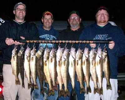 What a beautiful afternoon on the water we had. Mickey, Tim and Matt were back out with me for a short 5hr trip. We left the Esky harbor around 4:30 and headed north a ways. We started casting spinnerbaits for pike, but quickly realized they were not active at all with the bright conditions. We then got switched over to the walleye mode and headed to a spot a little closer than where we fished Wednesday. From 6:30 until 8:30 p.m. we could not keep all the lines in the water. We had doubles, triples, and had two fish on when we were pulling lines in and getting ready to head in. It was some of the most fun and hectic fishing I've had in a while, the guys called it "quite a workout". In all, we had about 25 fish hooked and the guys kept 15. All fish came while trolling WalleyesChoice (http://www.walleyeschoice.com) harnesses. I'll have to post the colors later because we were using some colors I haven't used in a while and I'm not sure of the numbers. We came in just after the sun went over the horizon and the full moon was coming up. With such a beautiful night I was surprised to only see two boats on the water and the closest one was over a mile away from our location. Here's a picture and video of our catch...good luck from all of us in the Bay de Noc area.