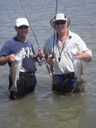Trout and reds have been great with the calm winds. Bassassassins in Mornig Glory have been the best baits in 2 ft. of water. Offshore rigs are producing also with small grubs in glow the best color.