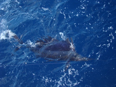 None of the boats were seeing much and after the great week of fishing we had this week we were all disappointed but all the same we hung in there and at last we got the bite and we made the most out of it. We ended up catching a big 90 plus inch sail fish. Well I guess if you're not going to catch a lot then catch a big one and that was just what we did.