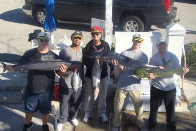 Mike caught a 30 plus pound Wahoo. Doug caught a 8 pound dolphin fish along with his big king fish, Josh ended up boating another 20 pound plus Wahoo throw in a good dozen bonitos and we had a great trip.