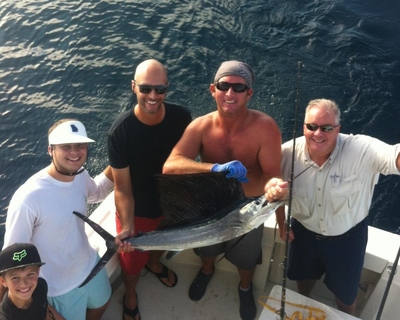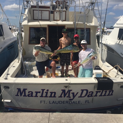 Our Fort Lauderdale fishing charters continue to offer opportunities for Sailfish and Mahi-Mahi. We are once again seeing these fish on both live and dead baits. As for the live baits we have seen them both on the kite with various livies and also on live Ballyhooo behind the dredge teasers. We have caught several on the troll on dead rigged baits and a nice narrow Bonito strip has been the hot bait for us. This time of year many of the Sailfish are very often smaller and short of the adult lengths but are never the less a lot of fun and often very aggressive and persistent when they set their sights on eating a bait. The Mahi-Mahi remain close to shore for us and it has been best to the south of our inlet and once again inshore on the reefs with Ballyhoo being their main focus. Pods of Porpoise hounding the Ballyhoo schools as well. Some smaller Kings and quite a few Cero Macks in there as well.