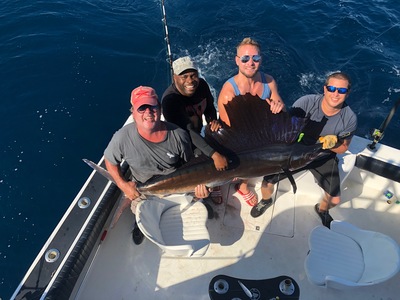 We must’ve spent at least 45 minutes to an hour looking around to no avail but finally after locating a nice frigate bird working just inside of us we started trolling that way and before you know it Michael had a fish of a lifetime on beautiful Sailfish over 85 inches one of the biggest one so far this season and it’s just the beginning so buckle up guys and get ready for some great action this winter fishing aboard