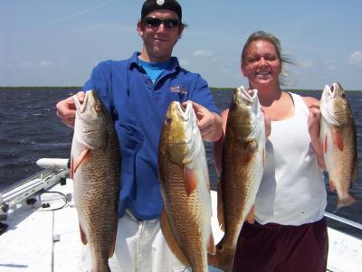 Skip Marks and his son Phillip and daughter Alex was not going to let the windy forecast stop them from fishing, Skip has fished with me for 9 yrs now and we always catch and have a great time. Well WINDY was not the word today GUSTY was more like it. We stared out with 18-2 mph winds that quickly went to 25-30 no exaggeration. Redfish the most protected water I could find was the only option today. First pond things started off great with 3 nice reds in the box pretty quick. But the rest of the day was to be battle with the wind and redfish. The reds were scattered and far in between. But we hammered the shorelines and flats with gold spoons and LSU spinners and put together a good catch for the conditions. Made about a million cast until we were wore out and called it a day at noon in the sustained 30 mph wind.