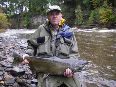 10% of the people are fishing the Salmon River and are pounding fresh kings and giant chrome trout. They have it figured out. They just fish to them. Savvy anglers are using big gooey egg sacs and hunks of skein under floats or bottom bouncing. Fly guys are swinging bright flies, in fluorescent orange, chartreuse and pink and getting the job done.