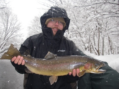 Not a lot to report on the salmon river right now. I canceled a few trips due to the bitter cold but I am out the next later this week and the weekend so I will have an update then. This cold weather has most of the river is full of slush. You will have to concentrate your efforts in the upper end of the river. Blue eggs and small pink and chartreuse flies are doing the job there. Fishing overall has been very slow. We need some water.