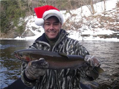 With the water running at 335 cfs on the salmon river and this nice early winter thaw, conditions are really good. Look for some good steelhead fishing over the next few weeks. There are fresh fish scattered throughout the river. Pink and blue egg sac are working the best. John Williams and I did a short float from Rt2A to the Ball Park this am.