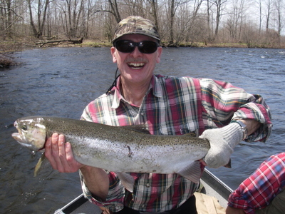 Just another fantastic few days of fishing on the salmon river as steelhead are speeding back to the cold waters of Lake O. We are now finding 95% of our fish in the fat turbid oxygenated water that they love so much, when the water temps soar into the 50s.