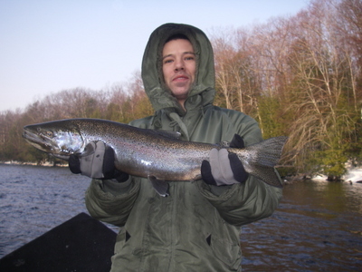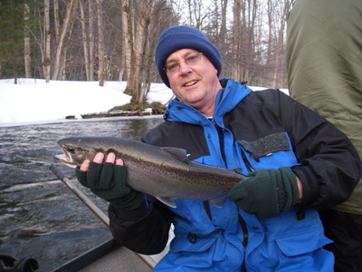 Conditions are starting to act a lot like spring for Western New York. You don't like the fishing conditions just wait a day, it'll change. As you can imagine right now everything is flooded. The way the weather forecast is looking, conditions will stay this way for at least through this week. However all the snow and ice is now melted off, this will give our streams and rivers a chance to gain a few degrees in water temperatures. Right now most of our streams water temperatures are holding somewhere in the mid to upper 30° mark. I suspect when water flows, moderate we will have good runs of fresh steelhead. The way the forecast is looking the smaller streams will start to moderate by the end of the week, Oak Orchard River will start to come in to shape sometime next week. We will be fishing in high off color water for the next couple of weeks. With good water temperatures this will not be much of an issue.