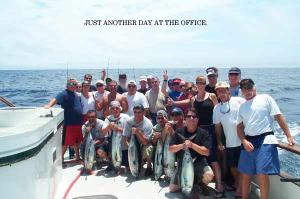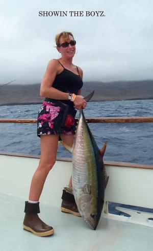 We started at Paradise Island in hopes of getting some nice quality fish for the trip. This morning we had some southeast wind with south swell, which was left over from the Hurricane that was down below us at 200 miles. We had a steady pick on 40 to 60lb Yellowfin Tuna for most of the day and for about one hour they decided to bite for us before it was time to start heading up the line.