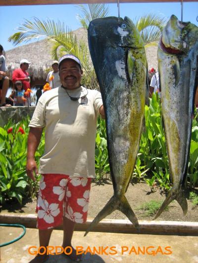 On Sunday, June 1 the annual Dorado Tournament was held out of La Playita. This year the event attracted some 35 teams, mostly pangas, but also a few cruisers. No huge numbers of fish, but at least fifteen respectable dorado were brought to scale by the 1:00 p.m. deadline. Gary Weis from Santa Monica was fishing with Gordo Banks Pangas skipper Chame Pino on the 22 ft. "Killer" and they accounted for the winning dorado, it weighed in at 45.5 pounds, caught on a bolito on the San Luis Bank.