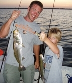 First light Sea trout on DOA artificial shrimp! Scott Gifford and his son tied into trout on the Middle Ground grass-flats first thing in the morning. Scott's fish was 22". The bay flats and bridges have been producing some nice fish but you may need to cover some ground to find them. Spotted sea trout, bluefish, Gray snapper, flounder and pompano are just some of the fish coming in. Large schools of jacks, ladyfish, and bluefish may start the water boiling at any time. The fish keep moving so you need to keep moving. I find most of my fish along the edge of the deep grass and repeat my drift until they move off. The 3" DOA shrimp are working best for me while holding the pinfish at bay. Pinfish are good for the bay but not good for your live bait.