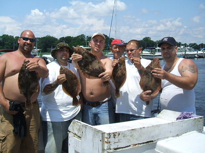 left the dock at 6am this morning with the paul krasulja party with paul was his father nick who was up from florida also friends robert, ray, mike and eric, fished on the outside the entire trip where the group had good action with the fluke for most of this trip, most od the fish were shorts but the anglers were able to boat 5 keepers, paul was high hook with 3 of the keepers, the weather was great a good time was had by all, Capt Joe.