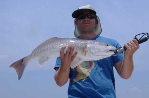 All of the larger reds we have been catching have been have been on the outside edge of the flats outside schools of bait. They have been feeding in the thick grassy areas in 2 to 4 feet of water. Like I said the key has been not letting them know you are there. Something you may want to try if you would like to get more than one fish is to only cast when you see tails. I have been doing this for years and have days that I could work a school of spooky reds for hours. Also, don't chase them if they spook off. If you pole off to there side and give them plenty of room you will put more fish in the boat.