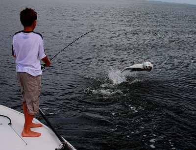 In the southern part of Biscayne Bay, Tarpon up to 60 Pounds have been jumping on Bass Assassin Eels in the Silver and Black colors, imitating mullet.