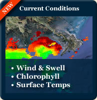 On the Current Conditions Map, click on the Buoys for wind direction, wave height and other weather related information impacting upswells such as atmospheric pressure and air versus water temperature.