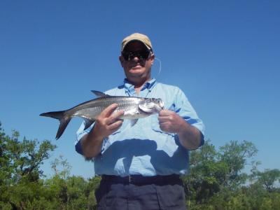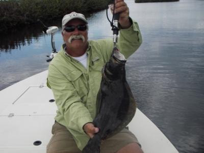 This was George Vogels final trip of the year as he heads back up to Mass. until we fish in August.We found the action to be pretty good on a cold front. We found the smaller Snook to be in a good mood as we caught 20 of them between 12-22" all on 1/4 oz Gold and Glow DOA shrimp. George also boated a small tarpon on a Glow DOA and a couple of Largemouth bass on the same bait. We also caught 8 Mangove Snappers on 3d Minnows and one 4# Flounder on a Gold DOA shrimp.All in all a pretty good day in the river on a cold front day!