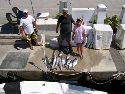 We started out trolling the reef with our 2 planners about 45 feet down and three surface baits skipping across the top. As luck would have it fishing was good and the bonitos and king fish started flying in the boat one after another. As we worked our way to the south I had talked to one of the other charter boats and Captain Steve had let me know that he had seem 4 sail fish jumping around. So once I found out how deep he had seen these fish I worked our way to 125 feet of water where the fish had been seen.