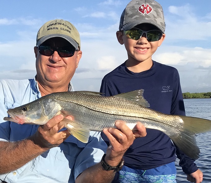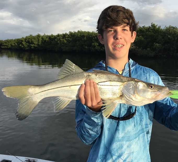 I do trips all the time with families and young kids along, I bring push button Zebco outfits for the younger kids to make it easier for them to cast and fish, young Miles hooked up this nice Snook on his Zebco rod, a great battle with the fish pulling drag over and over and jumping many times, then a great Photo and Release …………….